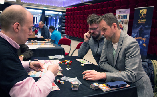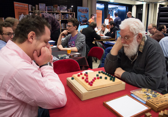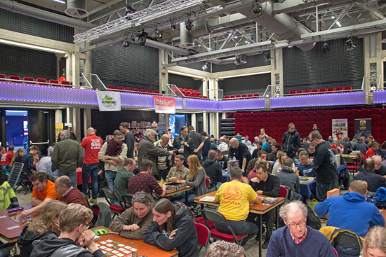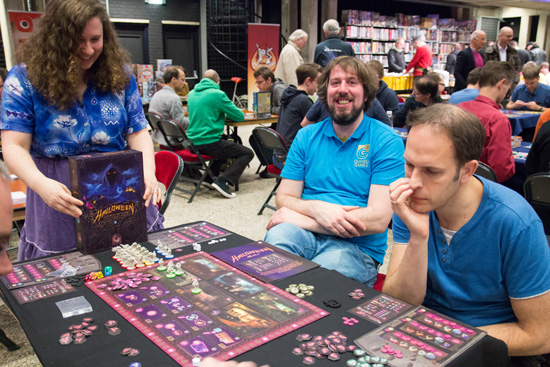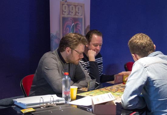 Naast de veiling kon je in de grote zaal terecht voor tientallen speldemonstraties, van gerenommeerde uitgevers, spellenclubs en spelauteurs. Voor de laatste groep bemande 999 Games een Bring & Try stand, waar het illustere duo Bert & Bob aan de lopende band nieuwe spelontwerpen besnuffelde.