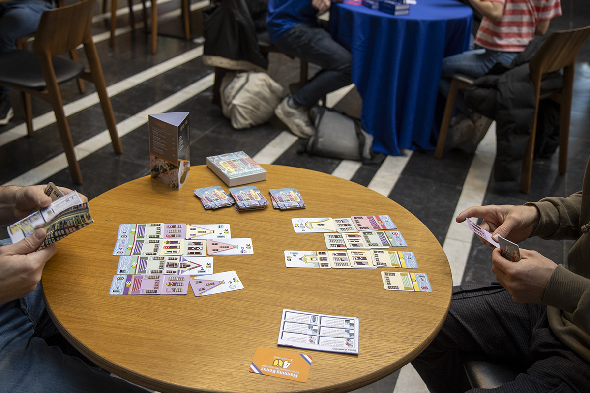 Vandaag werd in de prachtige bibliotheek Neude in Utrecht (een voormalig postkantoor) het spelevenement Utrecht Boardgame Design XXL gehouden. Het Spellenmaakgilde en zijn partners organiseren dit evenement in aanvulling op kleinschalige bijeenkomsten overal in het land, waar spelauteurs prototypes testen en nieuwe concepten met elkaar bespreken.